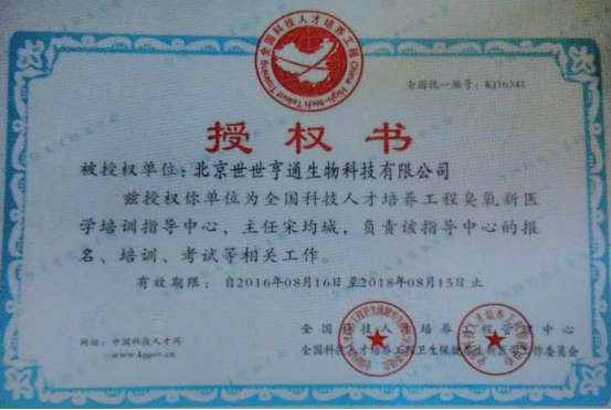 在启动大会上,全国科技人才培养工程管理中心滕主任宣读上级领导的任命书:宣布北京世世亨通生物科技有限公司董事长宋均城先生为《臭氧新医学指导工作委员会》主任,以及颁发授权书和专家证。